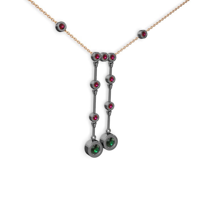 Yeşil kuvars ve rodolit garnet 925 ayar siyah rodyum kaplama gümüş kolye (40 cm rose altın rolo zincir)