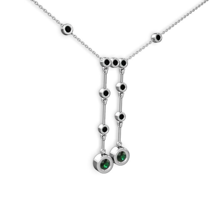Yeşil kuvars ve siyah zirkon 14 ayar beyaz altın kolye (40 cm gümüş rolo zincir)
