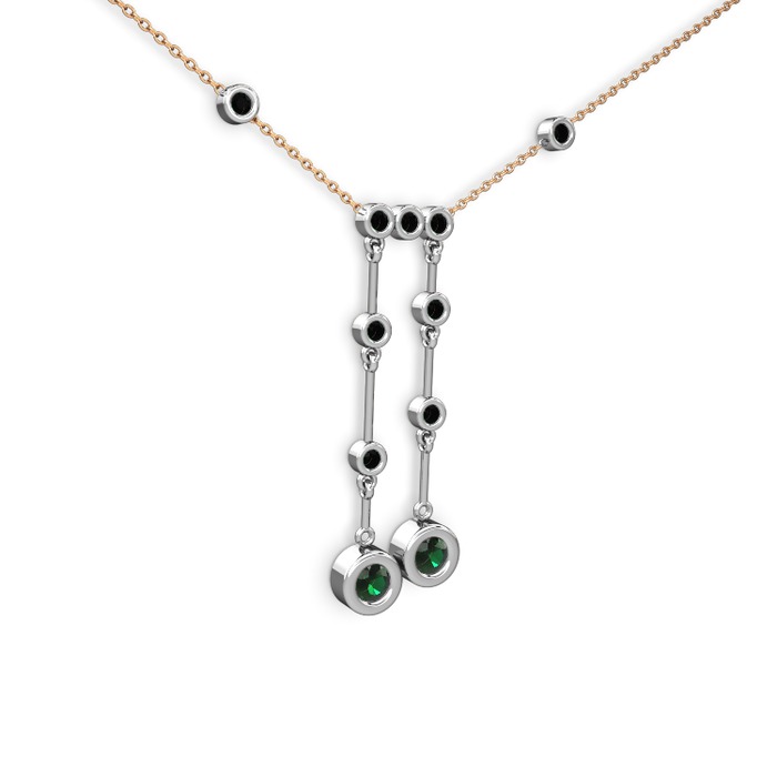 Yeşil kuvars ve siyah zirkon 925 ayar gümüş kolye (40 cm rose altın rolo zincir)