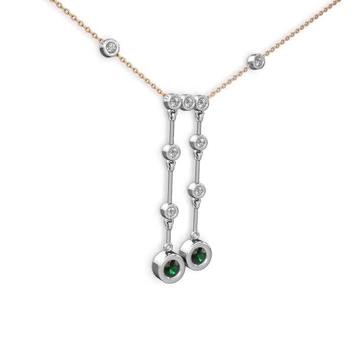 Yeşil kuvars ve swarovski 14 ayar beyaz altın kolye (40 cm rose altın rolo zincir)