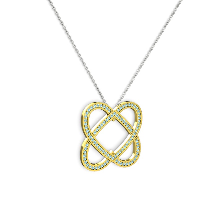 Akuamarin 18 ayar altın kolye (40 cm gümüş rolo zincir)