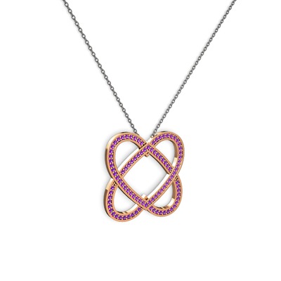 Ametist 18 ayar rose altın kolye (40 cm gümüş rolo zincir)