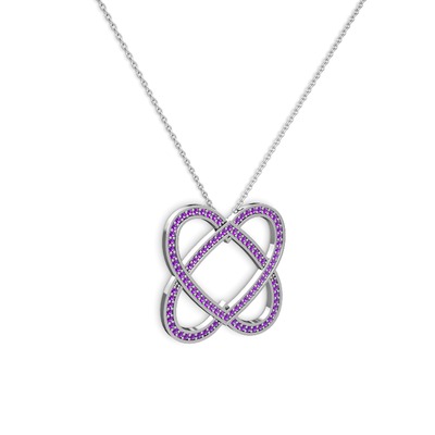Ametist 8 ayar beyaz altın kolye (40 cm beyaz altın rolo zincir)