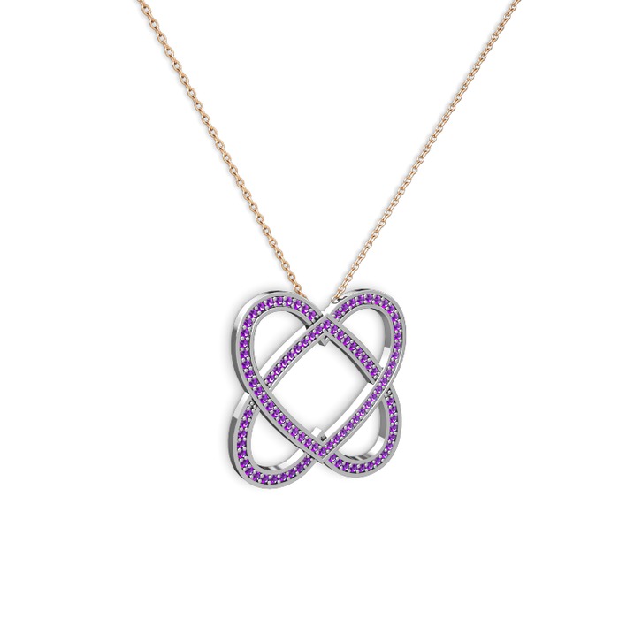 Ametist 8 ayar beyaz altın kolye (40 cm rose altın rolo zincir)