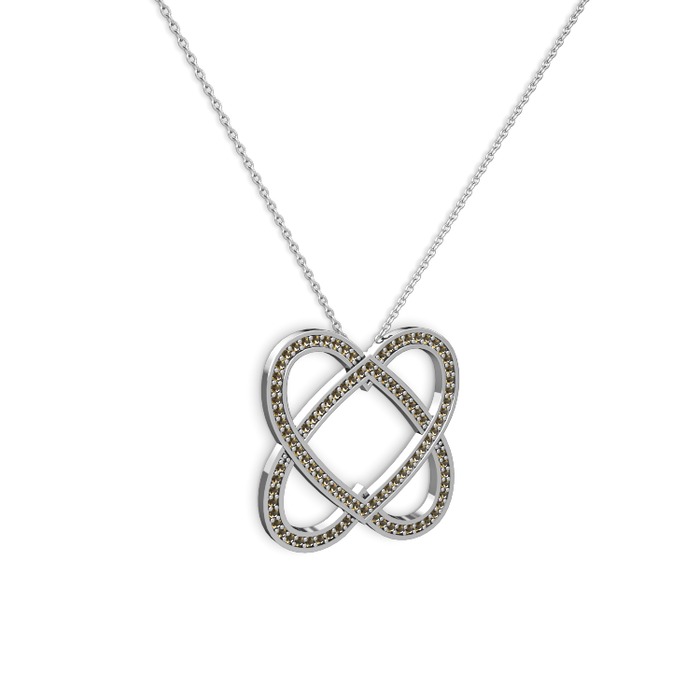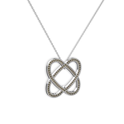 Dumanlı kuvars 14 ayar beyaz altın kolye (40 cm gümüş rolo zincir)