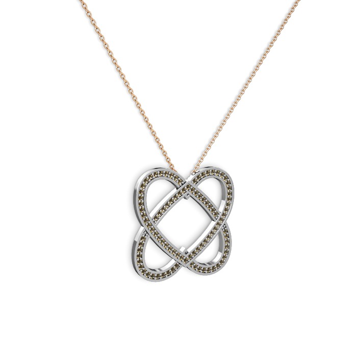 Dumanlı kuvars 18 ayar beyaz altın kolye (40 cm rose altın rolo zincir)