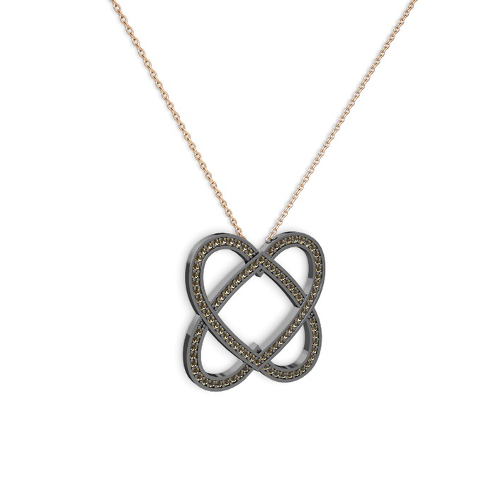 Dumanlı kuvars 925 ayar siyah rodyum kaplama gümüş kolye (40 cm rose altın rolo zincir)