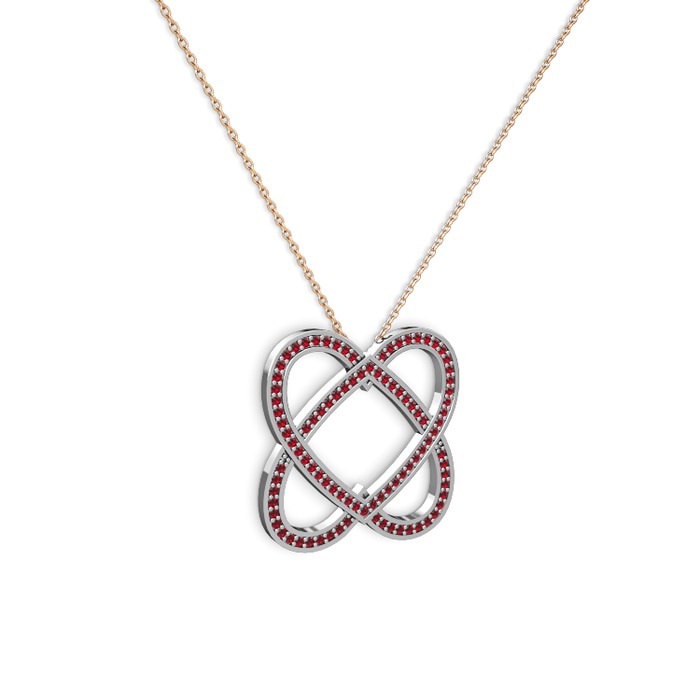 Garnet 8 ayar beyaz altın kolye (40 cm rose altın rolo zincir)