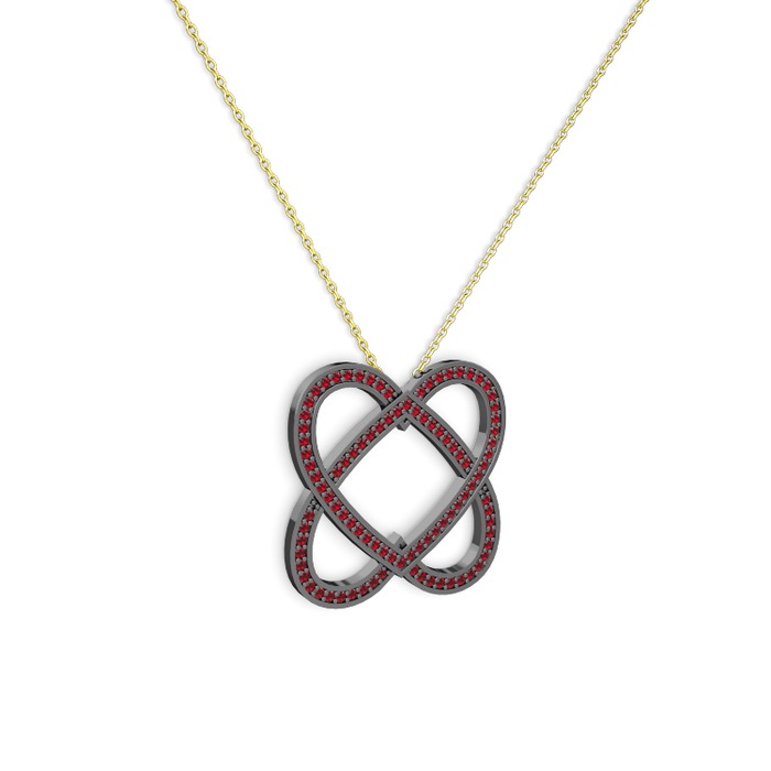 Garnet 925 ayar siyah rodyum kaplama gümüş kolye (40 cm altın rolo zincir)