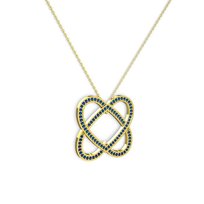 Lab safir 14 ayar altın kolye (40 cm altın rolo zincir)