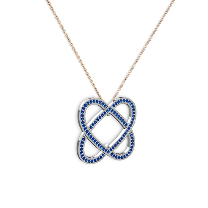 Lab safir 925 ayar gümüş kolye (40 cm rose altın rolo zincir)