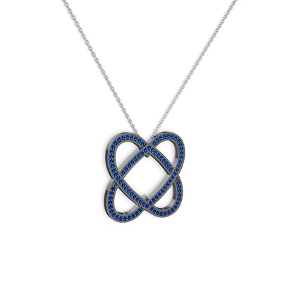 Lab safir 925 ayar siyah rodyum kaplama gümüş kolye (40 cm beyaz altın rolo zincir)