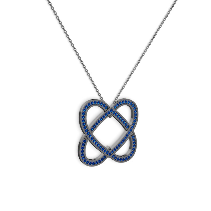 Lab safir 925 ayar siyah rodyum kaplama gümüş kolye (40 cm gümüş rolo zincir)