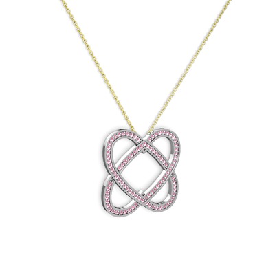Pembe kuvars 18 ayar beyaz altın kolye (40 cm altın rolo zincir)