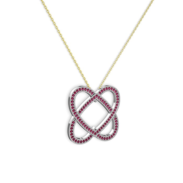 Rodolit garnet 14 ayar beyaz altın kolye (40 cm gümüş rolo zincir)