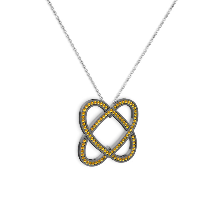 Sitrin 925 ayar siyah rodyum kaplama gümüş kolye (40 cm beyaz altın rolo zincir)