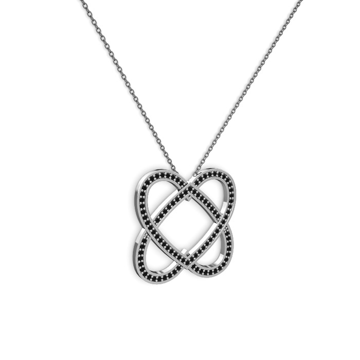 Siyah zirkon 18 ayar beyaz altın kolye (40 cm gümüş rolo zincir)