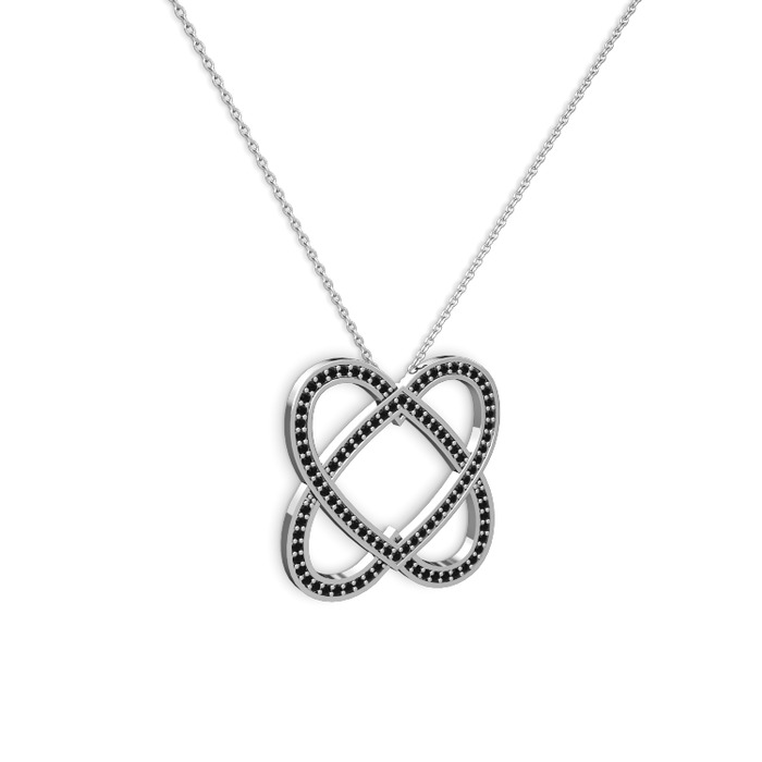 Siyah zirkon 925 ayar gümüş kolye (40 cm beyaz altın rolo zincir)