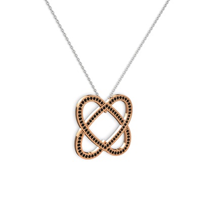 Siyah zirkon 925 ayar rose altın kaplama gümüş kolye (40 cm beyaz altın rolo zincir)