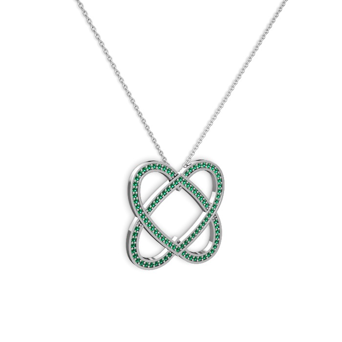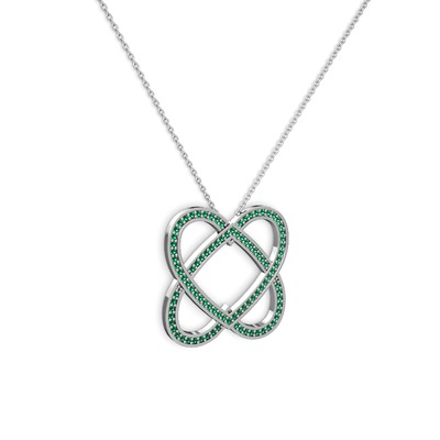 Yeşil kuvars 14 ayar beyaz altın kolye (40 cm gümüş rolo zincir)