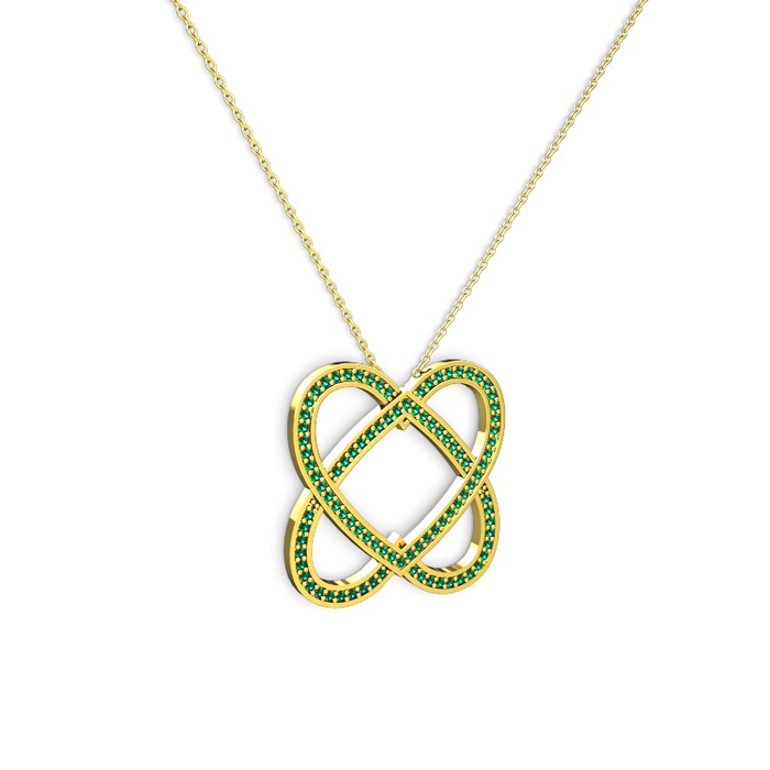 Yeşil kuvars 8 ayar altın kolye (40 cm gümüş rolo zincir)