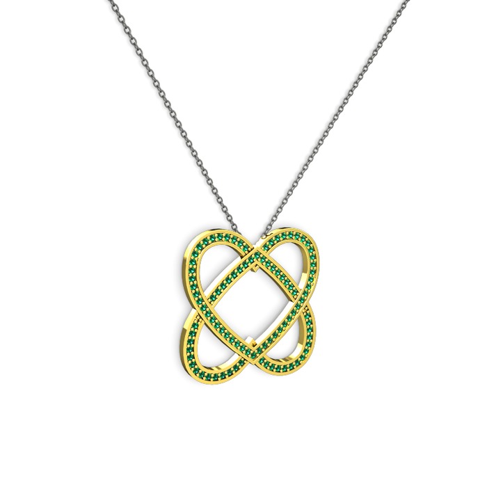 Yeşil kuvars 925 ayar altın kaplama gümüş kolye (40 cm gümüş rolo zincir)