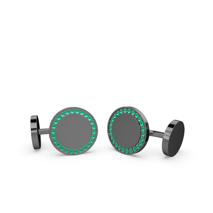 Kök zümrüt 925 ayar siyah rodyum kaplama gümüş kol düğmesi