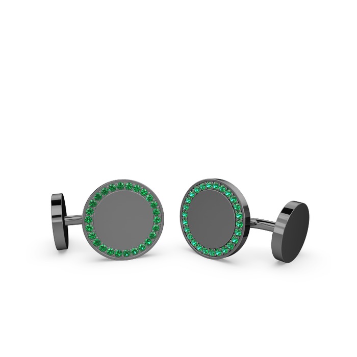 Yeşil kuvars 925 ayar siyah rodyum kaplama gümüş kol düğmesi