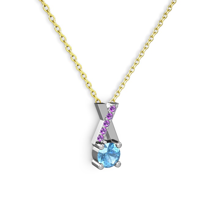 Akuamarin ve ametist 18 ayar beyaz altın kolye (40 cm altın rolo zincir)