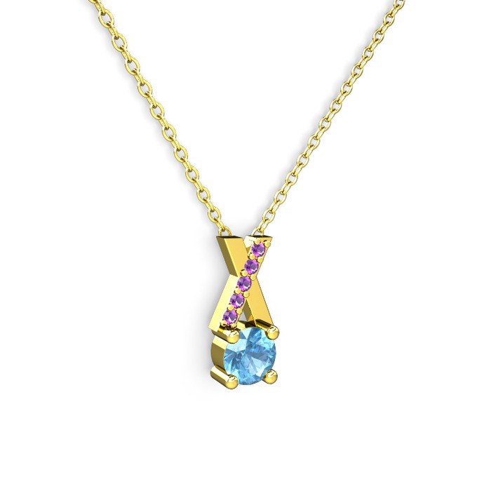 Akuamarin ve ametist 925 ayar altın kaplama gümüş kolye (40 cm gümüş rolo zincir)