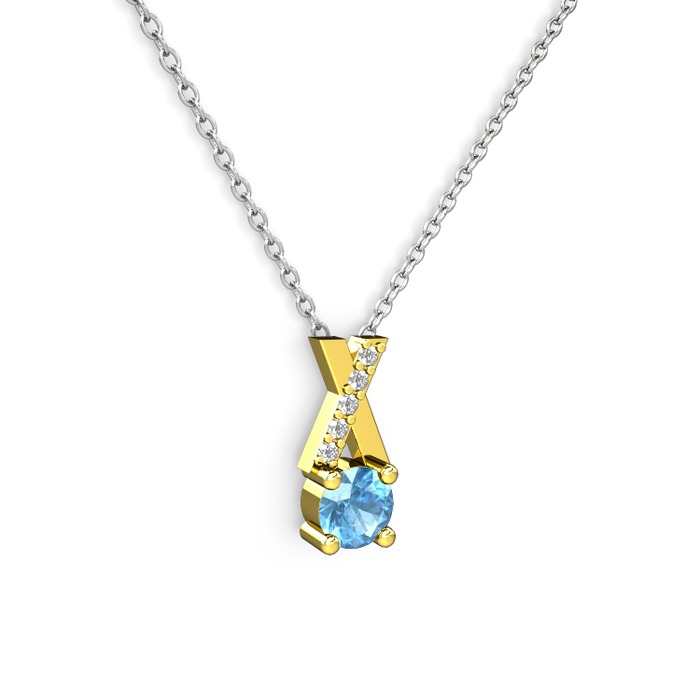Akuamarin ve beyaz zirkon 14 ayar altın kolye (40 cm beyaz altın rolo zincir)