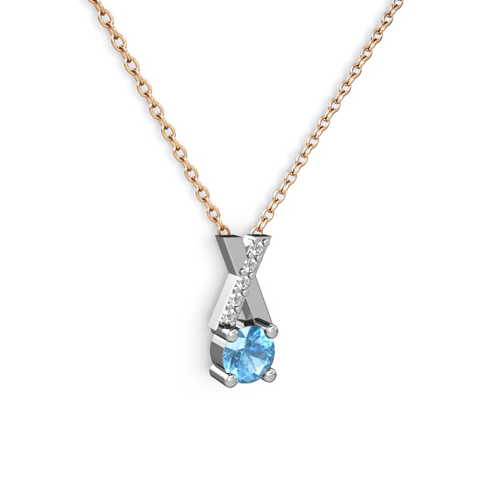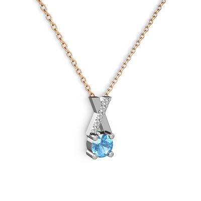 Akuamarin ve beyaz zirkon 18 ayar beyaz altın kolye (40 cm rose altın rolo zincir)