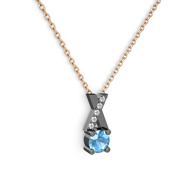 Akuamarin ve beyaz zirkon 925 ayar siyah rodyum kaplama gümüş kolye (40 cm gümüş rolo zincir)