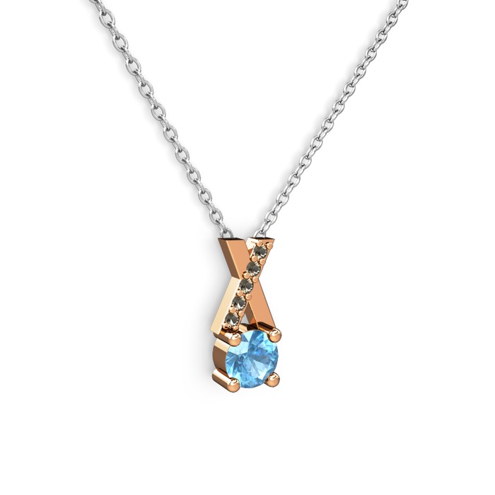 Akuamarin ve dumanlı kuvars 925 ayar rose altın kaplama gümüş kolye (40 cm beyaz altın rolo zincir)