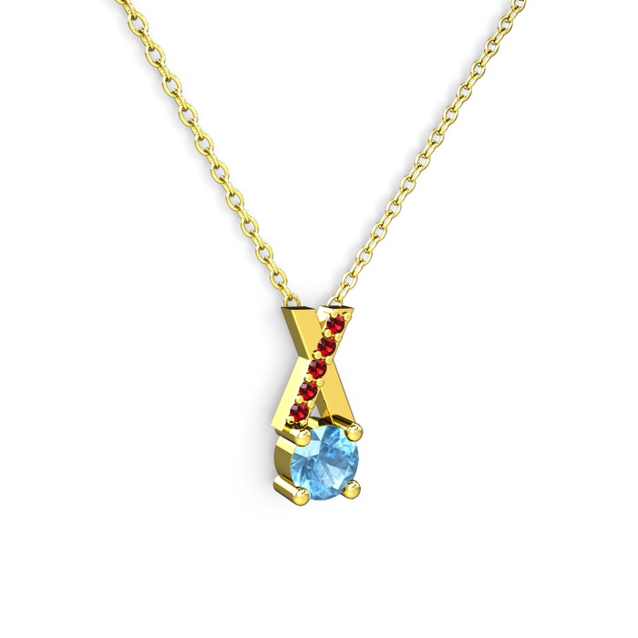 Akuamarin ve garnet 14 ayar altın kolye (40 cm altın rolo zincir)