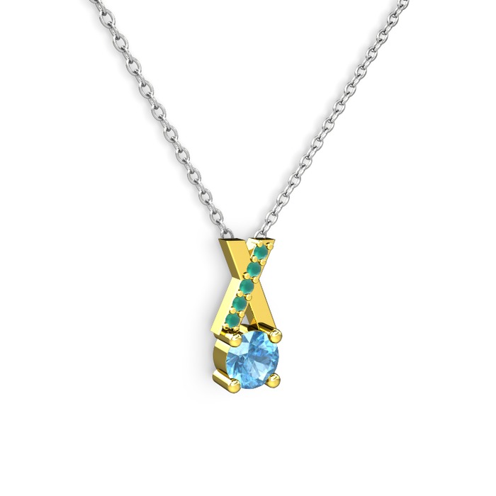 Akuamarin ve kök zümrüt 14 ayar altın kolye (40 cm beyaz altın rolo zincir)