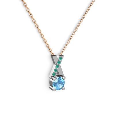 Akuamarin ve kök zümrüt 18 ayar beyaz altın kolye (40 cm rose altın rolo zincir)