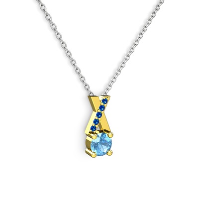 Akuamarin ve lab safir 14 ayar altın kolye (40 cm beyaz altın rolo zincir)