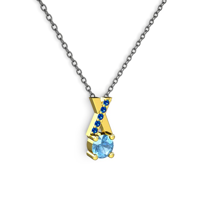 Akuamarin ve lab safir 18 ayar altın kolye (40 cm gümüş rolo zincir)