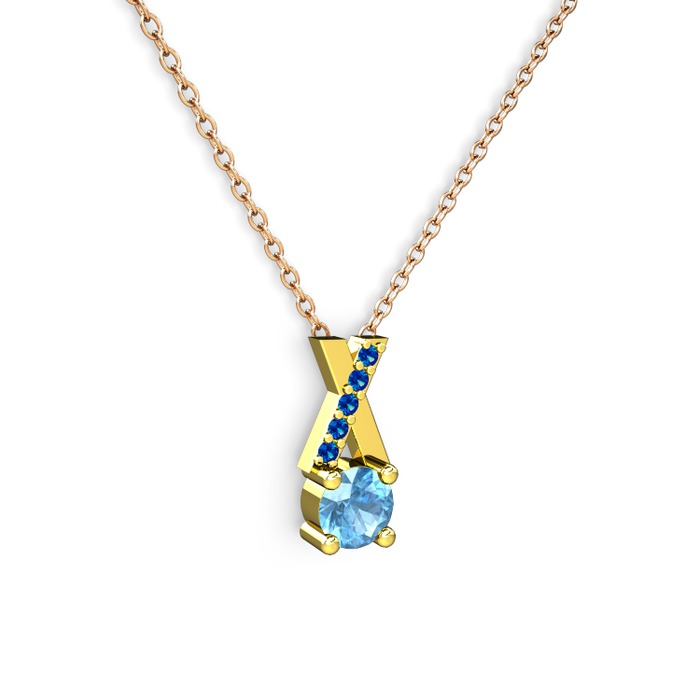 Akuamarin ve lab safir 18 ayar altın kolye (40 cm gümüş rolo zincir)