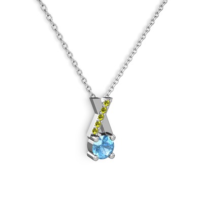 Akuamarin ve peridot 18 ayar beyaz altın kolye (40 cm beyaz altın rolo zincir)