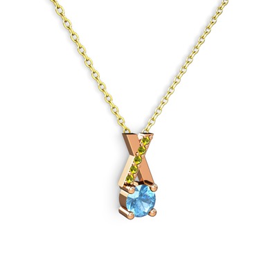 Akuamarin ve peridot 925 ayar rose altın kaplama gümüş kolye (40 cm gümüş rolo zincir)