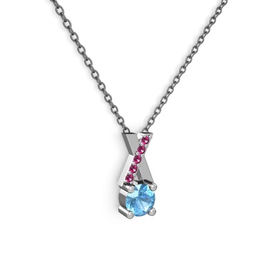 Akuamarin ve rodolit garnet 18 ayar beyaz altın kolye (40 cm gümüş rolo zincir)