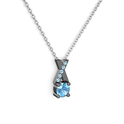 Akuamarin 925 ayar siyah rodyum kaplama gümüş kolye (40 cm beyaz altın rolo zincir)