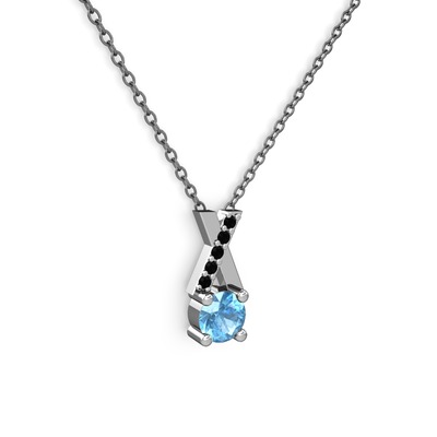 Akuamarin ve siyah zirkon 925 ayar gümüş kolye (40 cm gümüş rolo zincir)