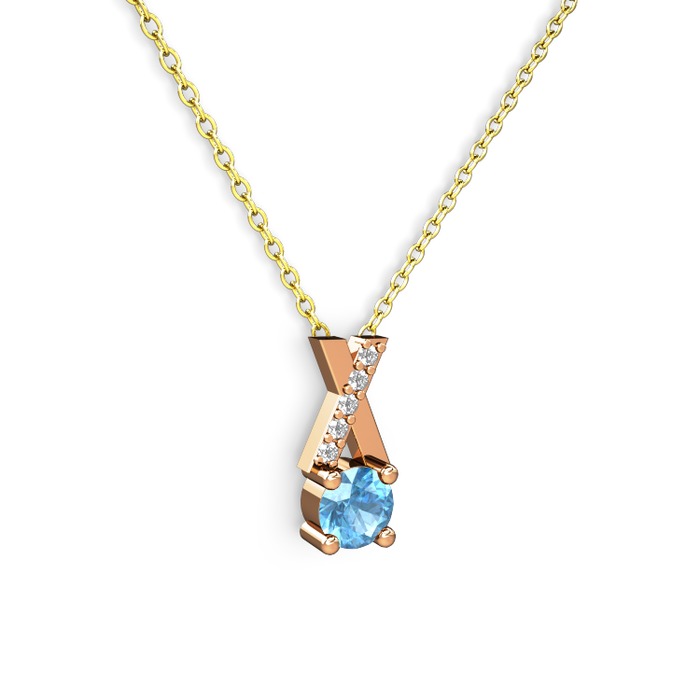Akuamarin ve swarovski 14 ayar rose altın kolye (40 cm altın rolo zincir)