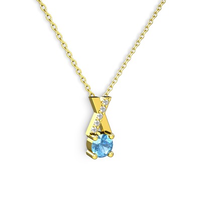 Akuamarin ve swarovski 8 ayar altın kolye (40 cm altın rolo zincir)