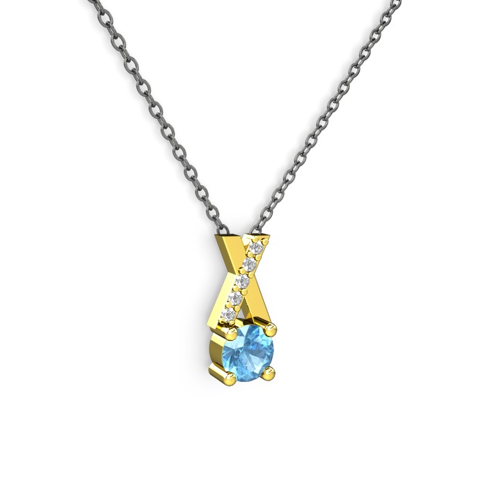 Akuamarin ve swarovski 8 ayar altın kolye (40 cm gümüş rolo zincir)