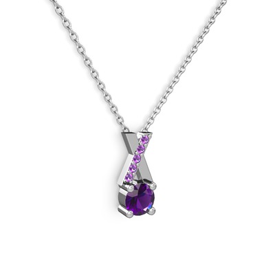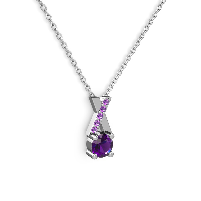 Ametist 18 ayar beyaz altın kolye (40 cm beyaz altın rolo zincir)