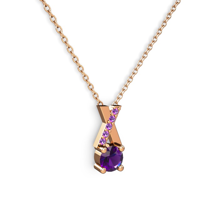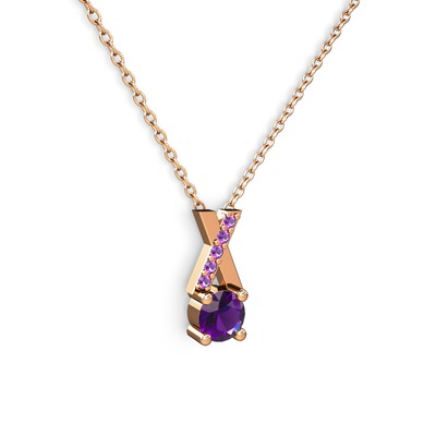 Ametist 18 ayar rose altın kolye (40 cm gümüş rolo zincir)